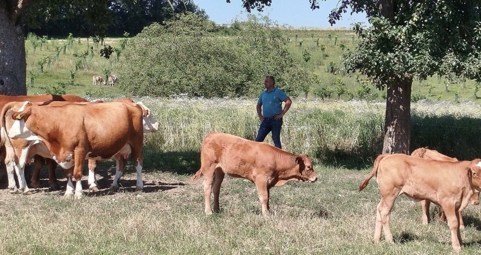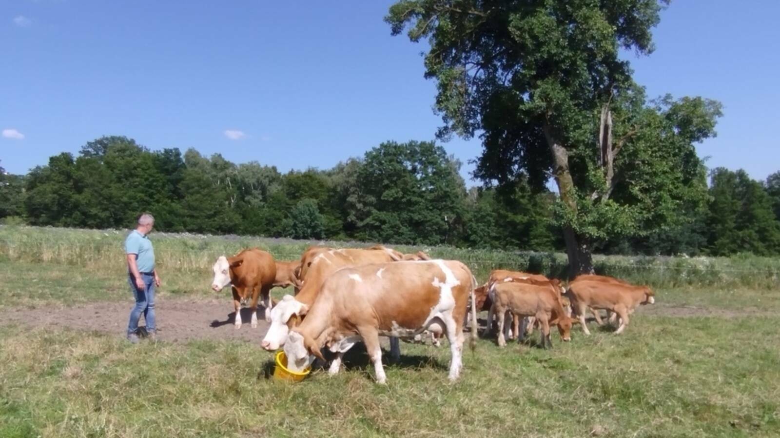 Ein besonderes Highlight ist unser Limousin-Stier, der für robuste Nachzuchten sorgt. Die Kälber wachsen naturnah bei ihren Müttern auf und bleiben rund neun Monate in der Herde, bevor sie zur zweiten Gruppe wechseln.